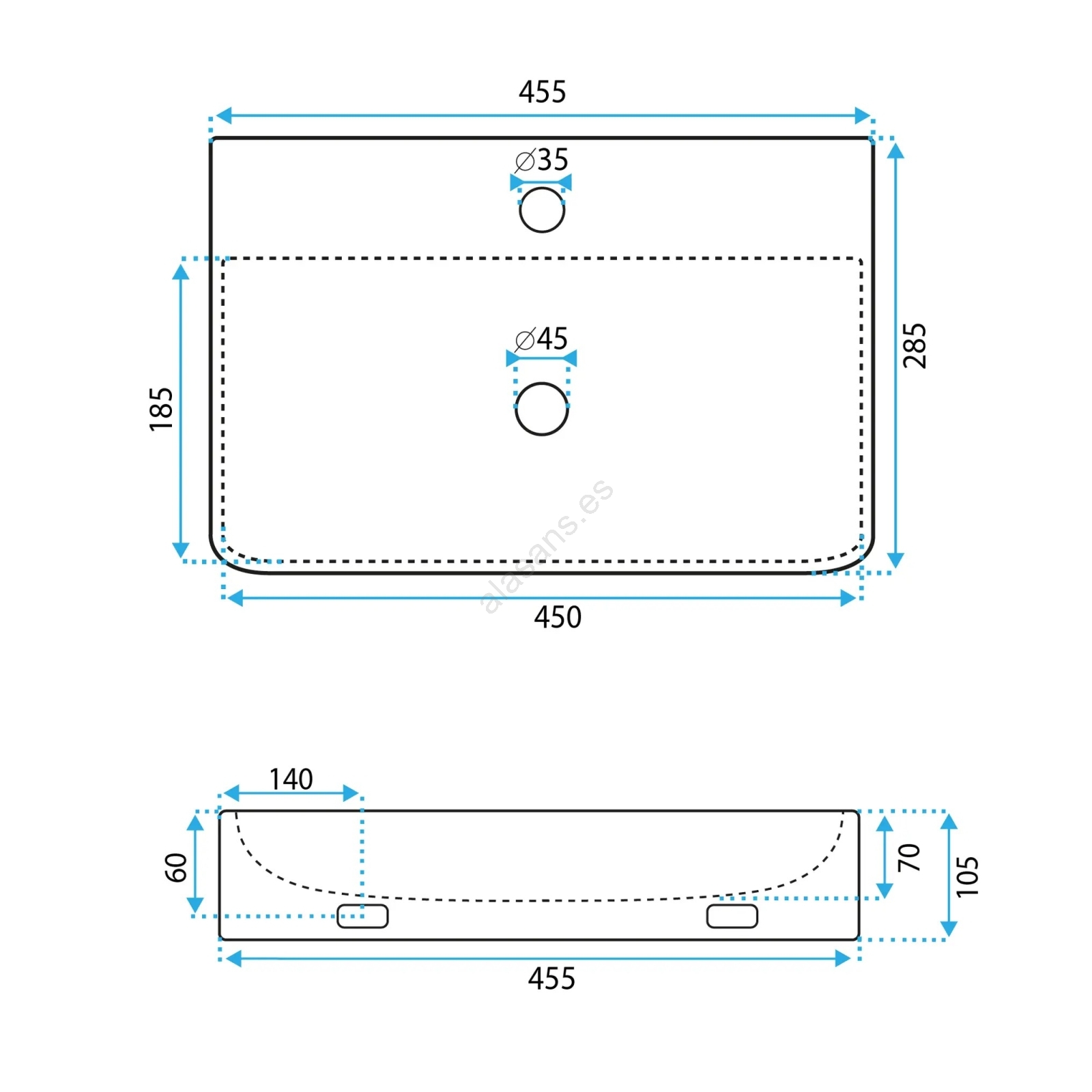 REA-U0630 - Lavabo para encimera/suspendido NAOMI 28,5x45,5 cm cerámica/blanco