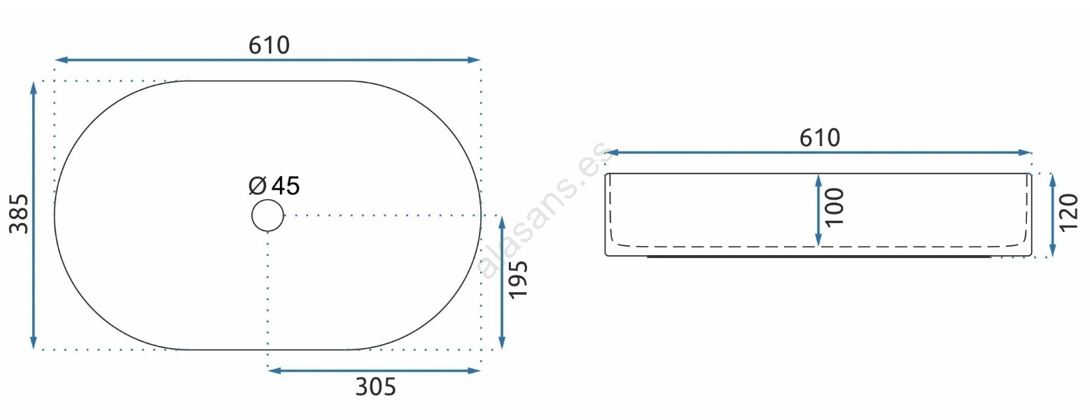 REA-U1055 - Lavabo de encimera NADIA 38,5x61 cm cerámica/blanco brillante