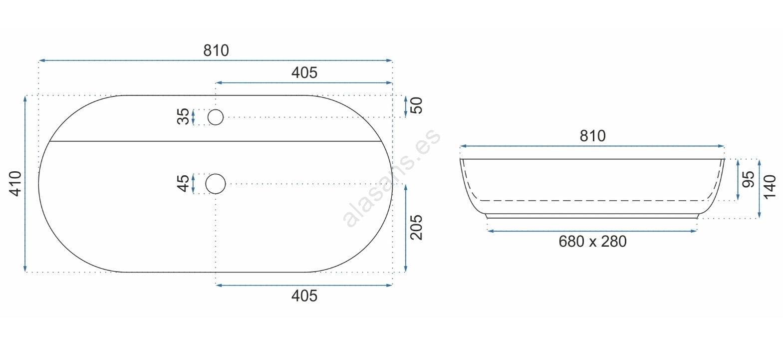 REA-U2541 - Lavabo sobre encimera AURA 41x81 cm cerámica/blanco brillante