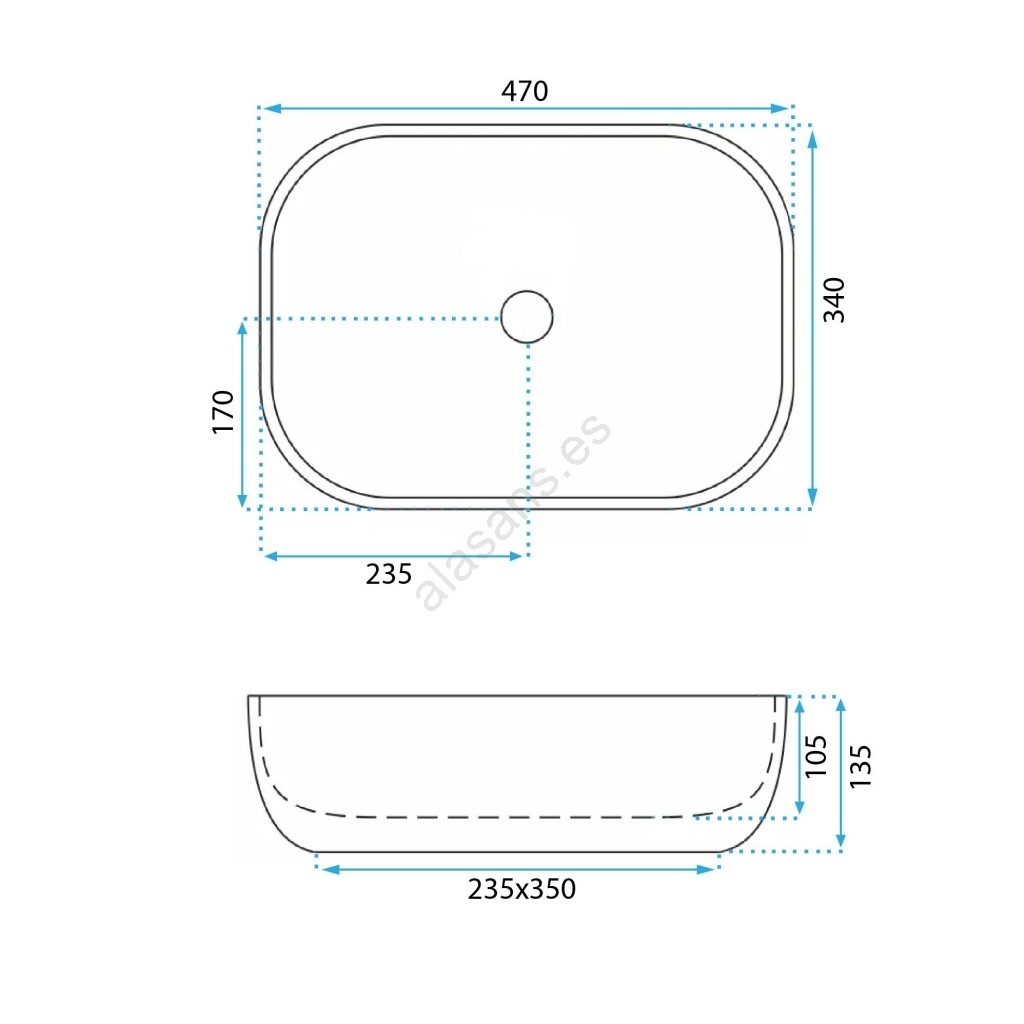 • REA-U3323 - Lavabo para encimera BELINDA 33,5x46,5 cm cerámica/imitación de piedra