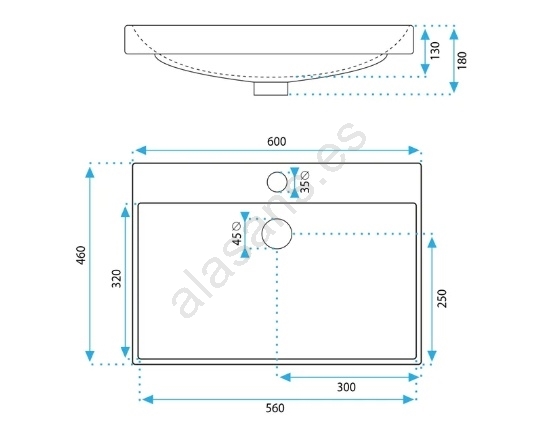 REA-U3326 - Lavabo encastrado MANDY 46x60 cm cerámica/blanco brillante