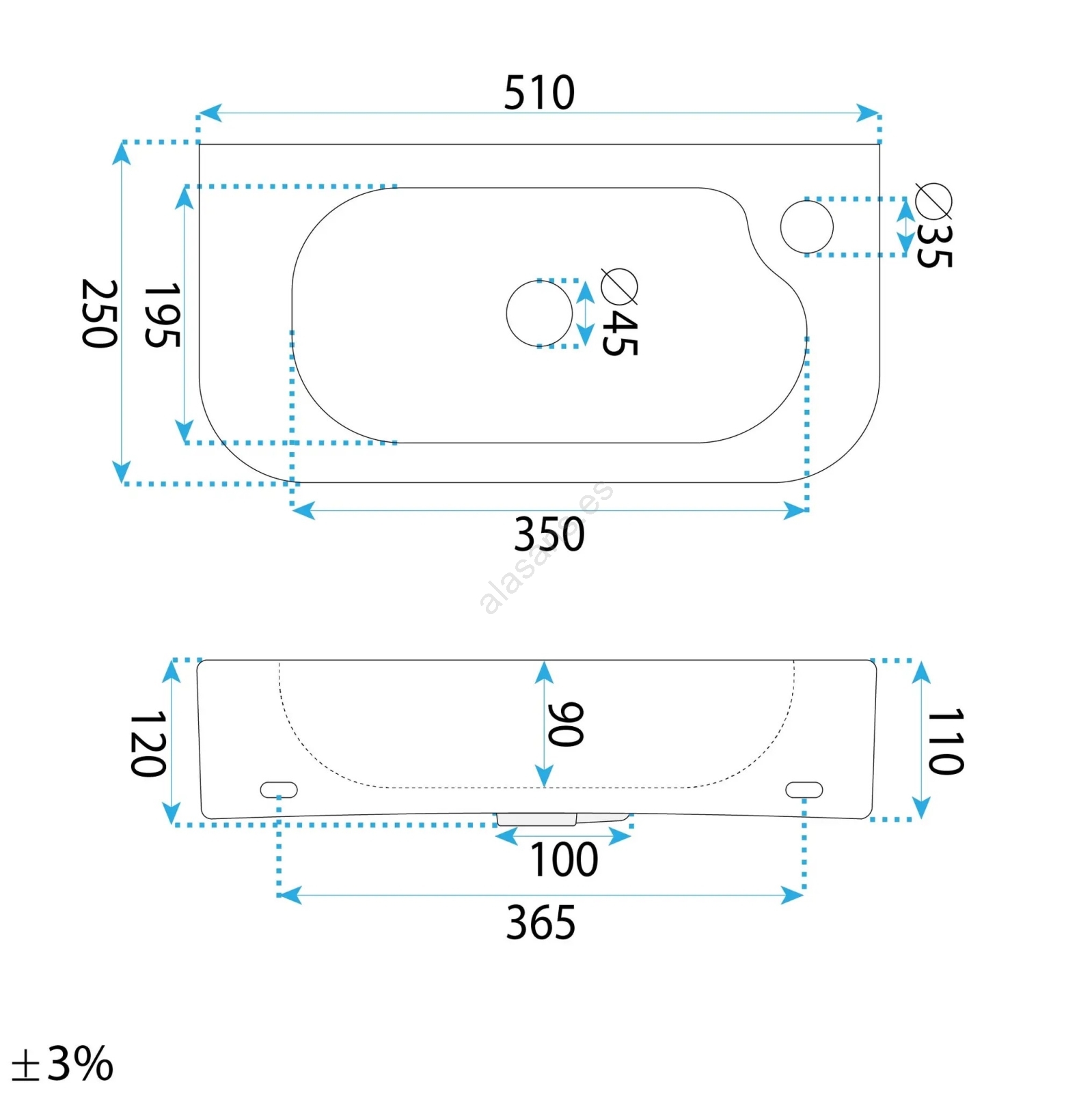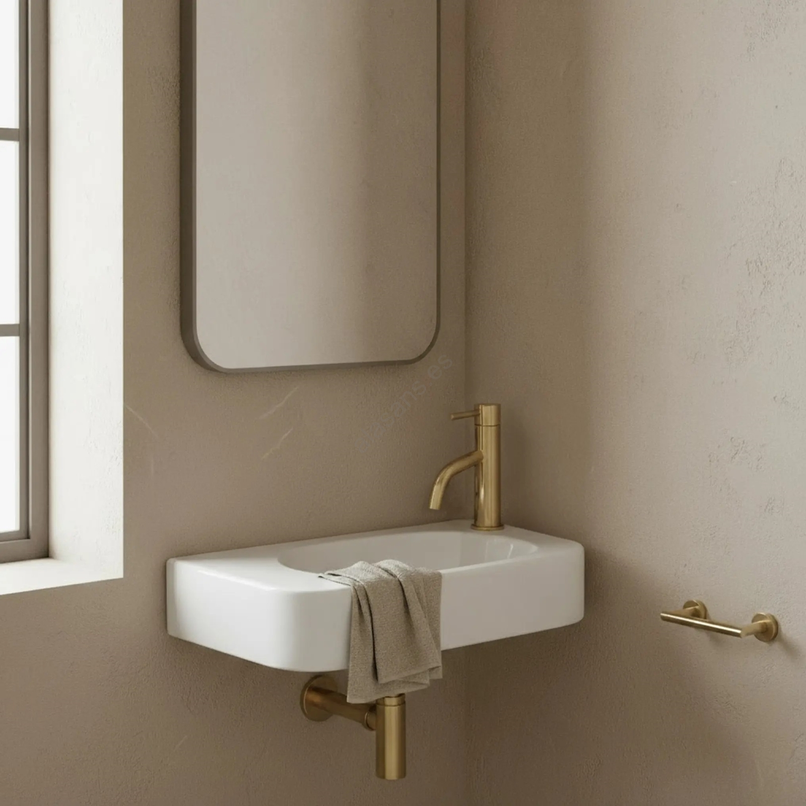 • El grifo para lavabo y el desagüe no están incluidos en el paquete.