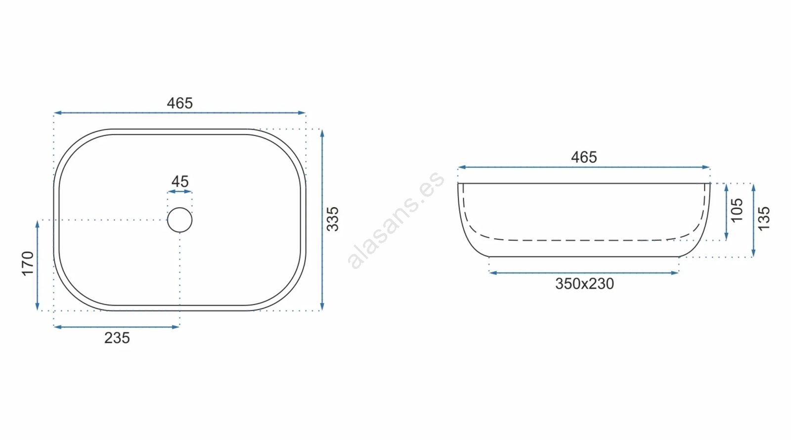 • REA-U3323 - Lavabo para encimera BELINDA 33,5x46,5 cm cerámica/imitación de piedra