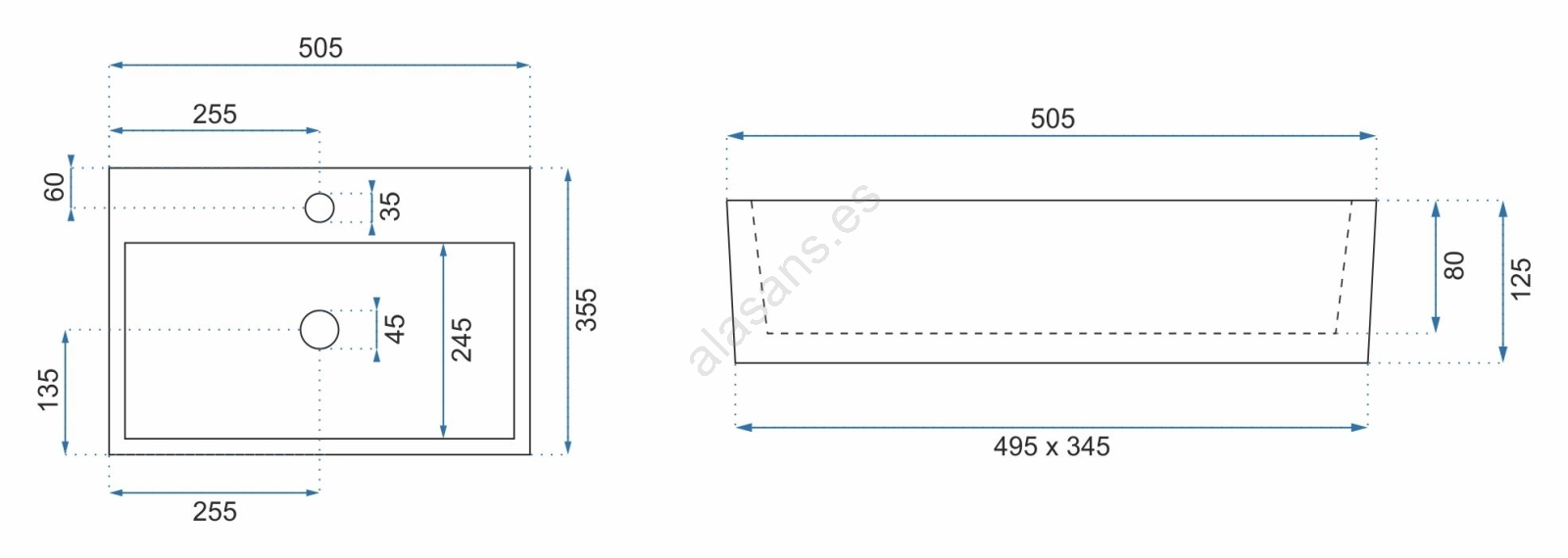 REA-U5000 - Lavabo sobre encimera VALERIA 35,5x50,5 cm cerámica/blanco brillante