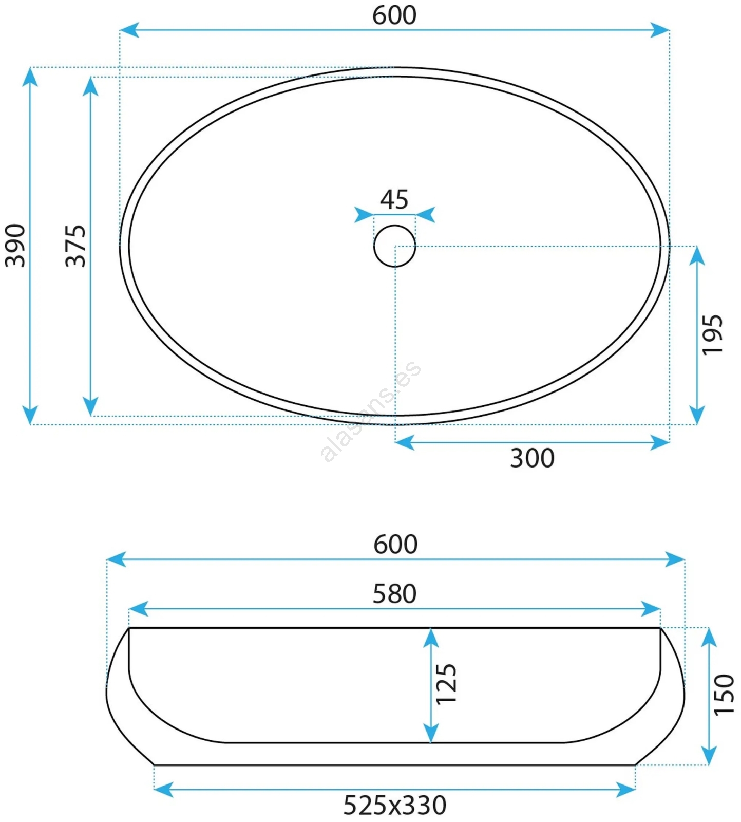 • Lavabo moderno y elegante sin rebosadero.
