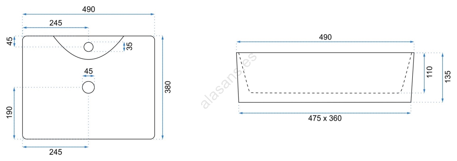 • El grifo de lavabo y el desagüe no están incluidos en el paquete.