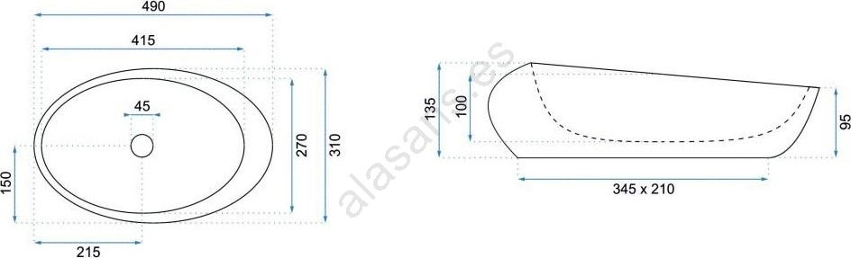 REA-U6649 - Lavabo sobre encimera ROXY 31x49 cm cerámica/efecto piedra