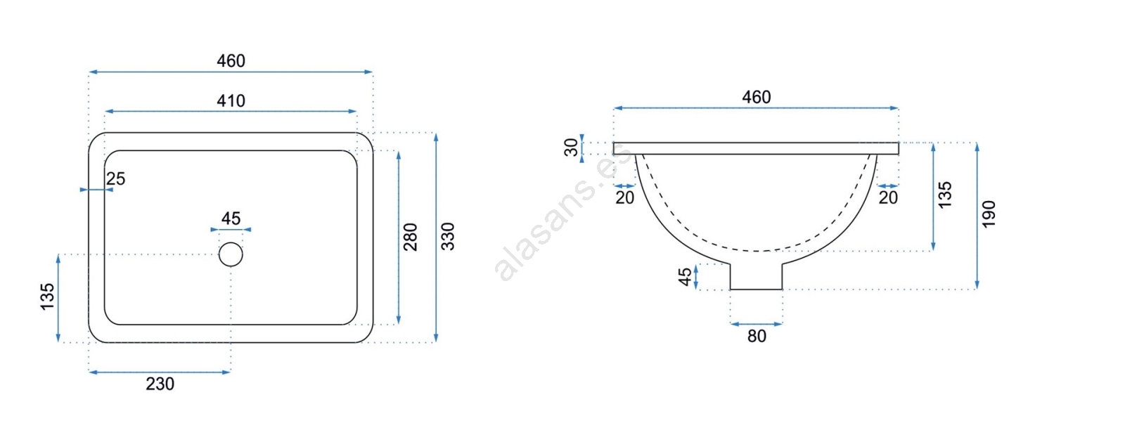 REA-U6653 - Lavabo empotrado ADELA 33x46 cm cerámica/blanco brillante