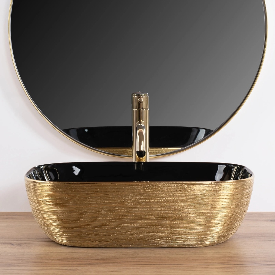 REA-U8780 - Lavabo sobre encimera BELINDA 33x46,5 cm cerámica/negro/dorado