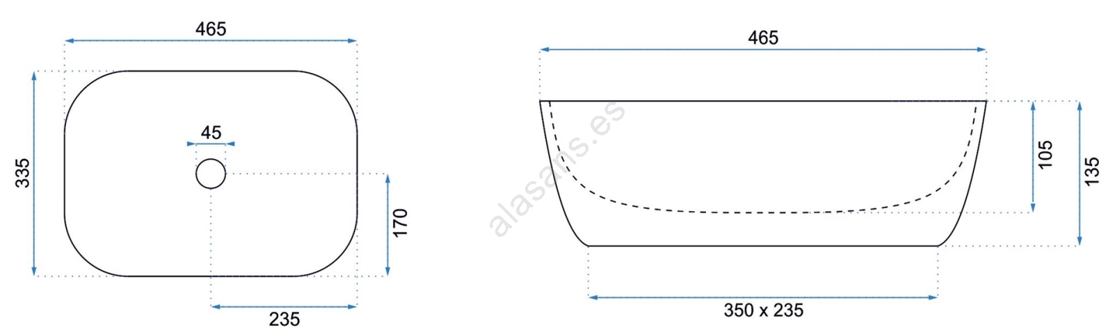 • REA-U3323 - Lavabo para encimera BELINDA 33,5x46,5 cm cerámica/imitación de piedra