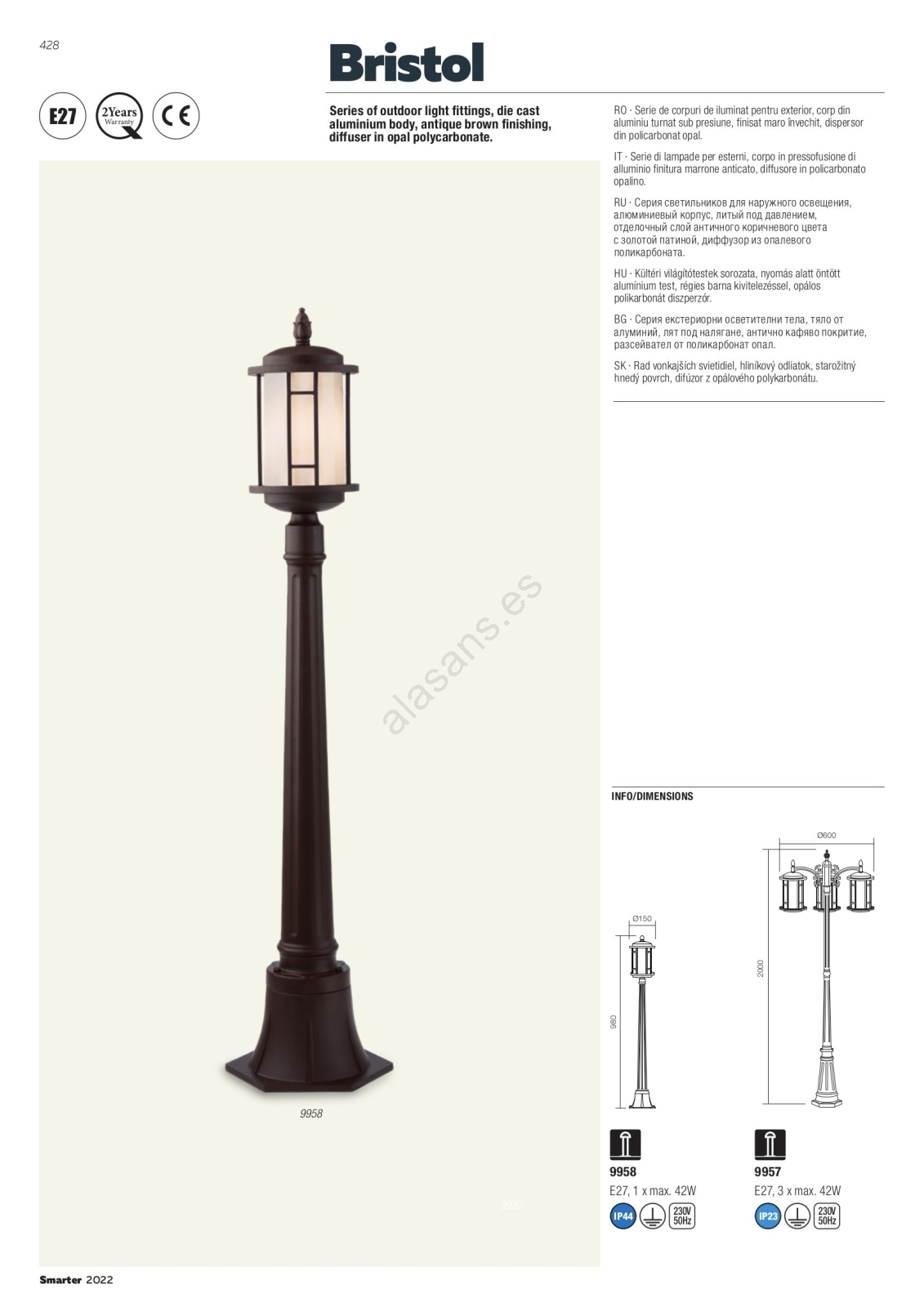 El diseño bonito y funcional caracteriza a Redo 9956 - Lámpara colgante para exterior con cadena BRISTOL 1xE27/42W/230V IP23.  Una bombilla con casquillo E27 es adecuada para la lámpara. Aquí, puedes comprar otras bombillas a precios ventajosos. Será una adición interesante para tu hogar.