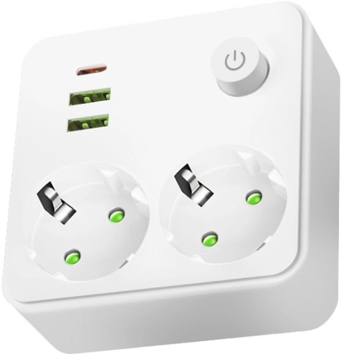 Regleta con interruptor LINEA 2x230 V + 3x USB A/C SCHUKO blanca
