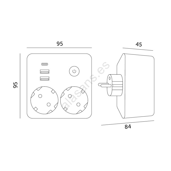 • Enchufes: 2x 230 V AC con toma de tierra SCHUKO.