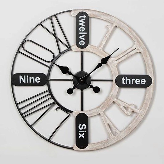 Reloj de pared 1xAA, diámetro 60 cm, acabado negro/blanco con pátina