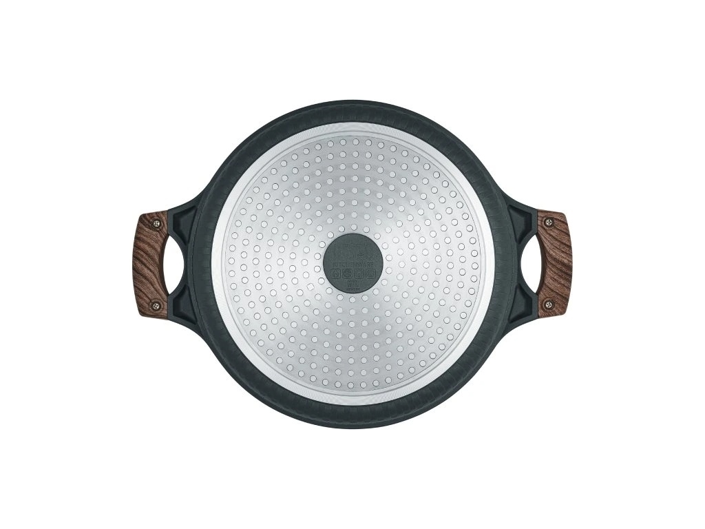 • La base reforzada incorpora un disco especial anti-deformación que aumenta la resistencia, protege contra el alabeo y mantiene la cacerola estable incluso con un uso prolongado.
