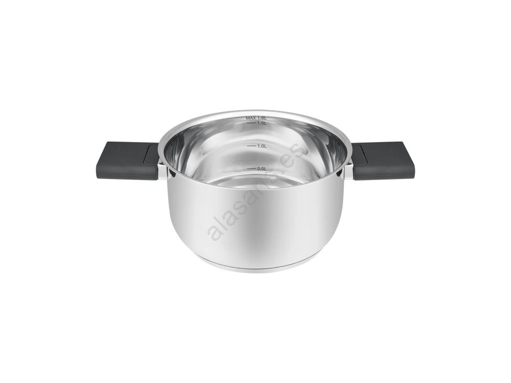• Con una capacidad de 1,8 litros y un diámetro de 16 cm, esta olla profunda es ideal para cocinar raciones grandes de sopas, caldos, salsas o pasta.