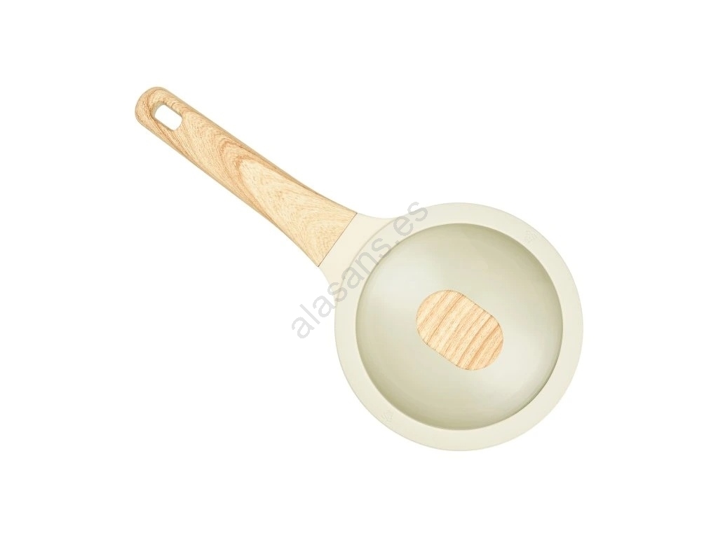 • Cuentan con un mango ergonómico con acabado antideslizante Soft Touch con efecto madera, que permanece frío al tacto. Además, la base está reforzada con un disco especial anti-deformación que protege la forma del menaje incluso en el uso diario.
