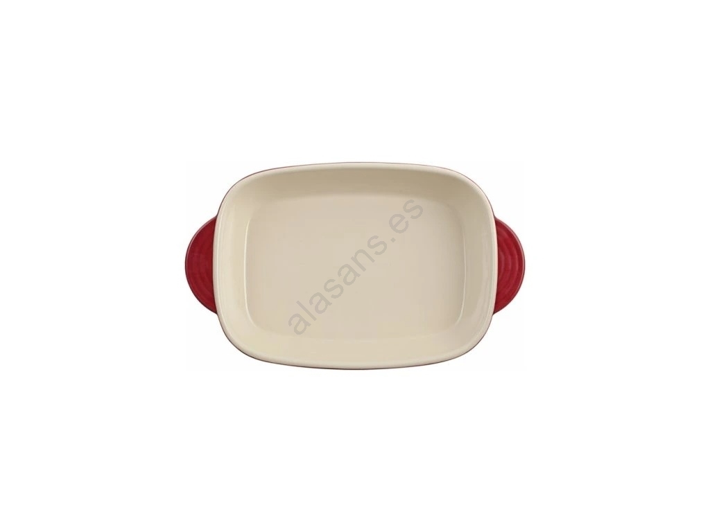 • Su diseño clásico y elegante en rojo primario permite servirla directamente en la mesa nada más sacarla del horno.