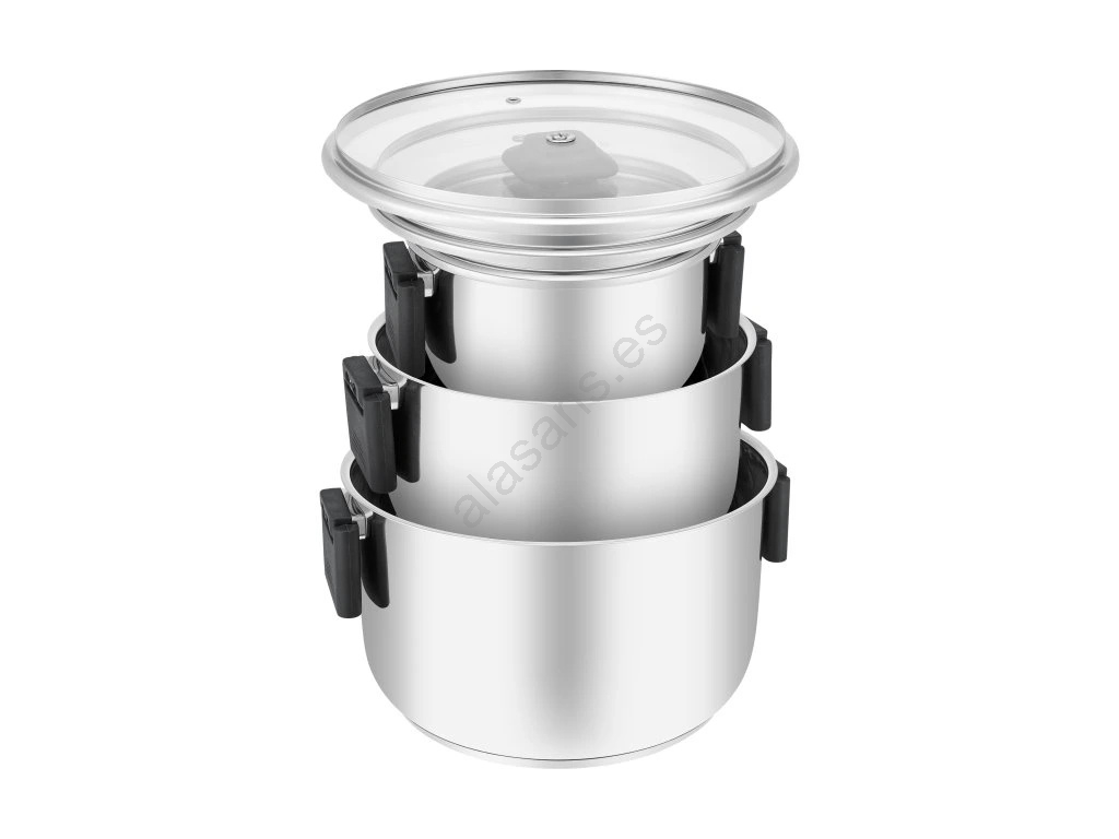 • Set de 3 ollas Anser con tapa ofrece un diseño elegante y una alta funcionalidad para la cocina diaria.