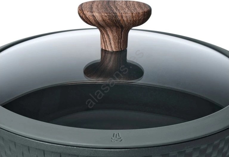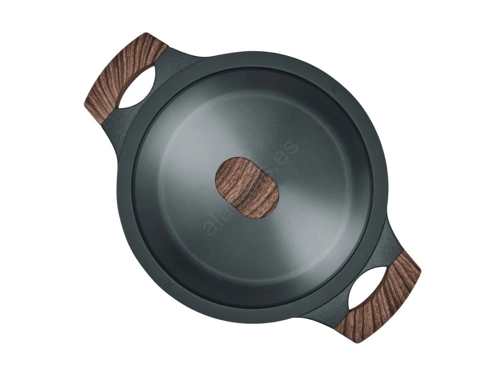• Las asas ergonómicas con acabado Soft Touch en diseño madera permanecen frías al tacto, garantizan un manejo seguro y cómodo y además cuentan con una práctica anilla para colgar.