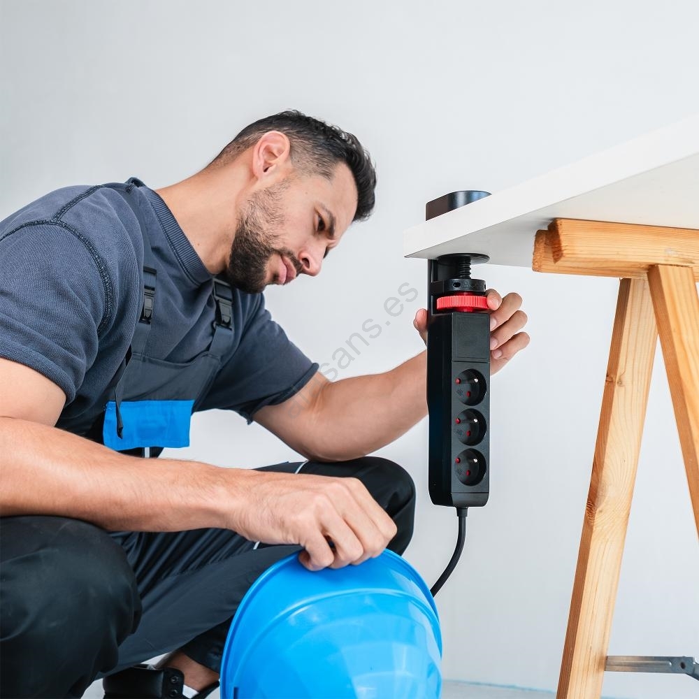Regleta con abrazadera para mesa, 3 enchufes Tipo E + 2xUSB-A + 1xUSB-C 1,5 m negra