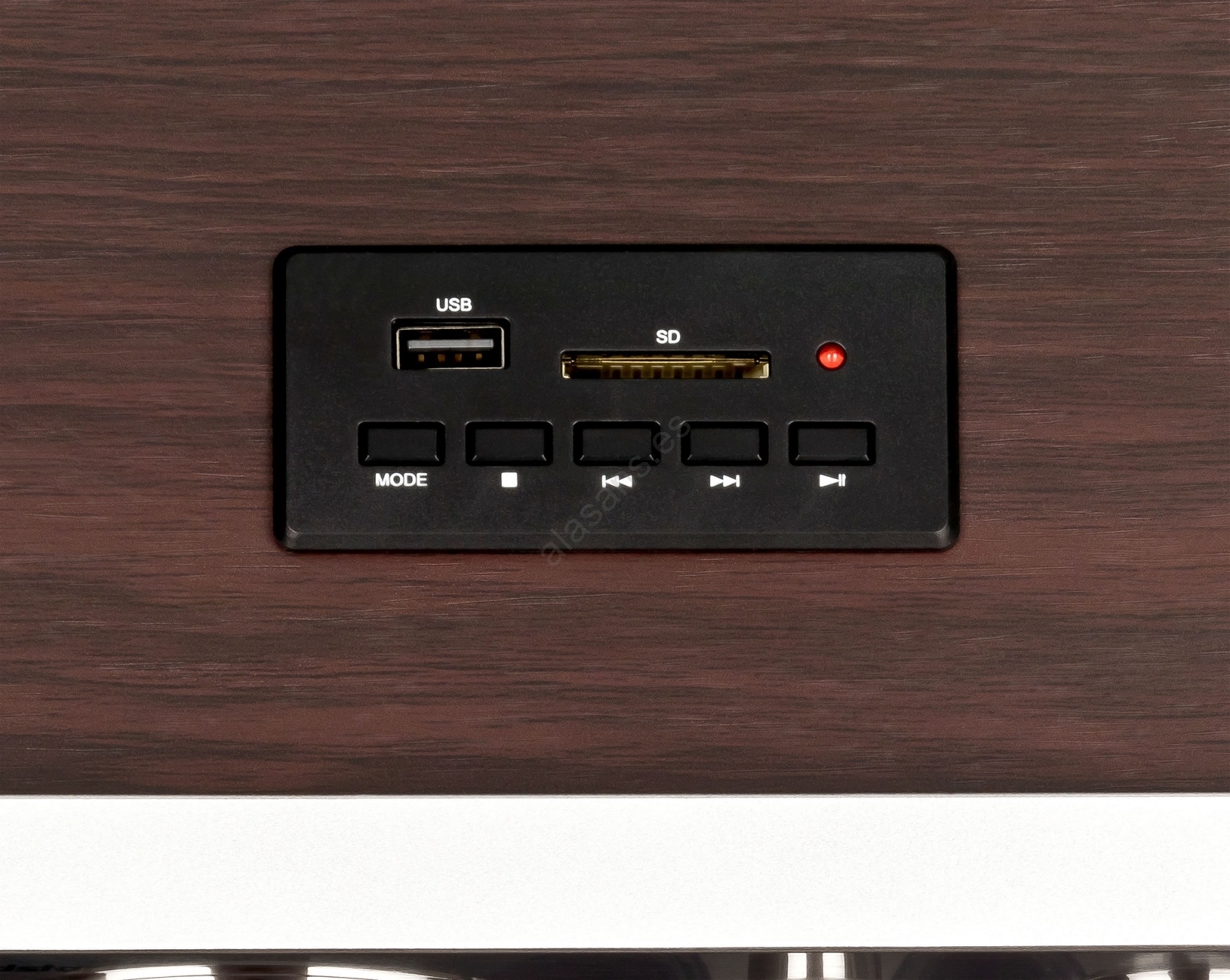 • Puerto USB integrado y lector de tarjetas SD para reproducción de archivos MP3.
