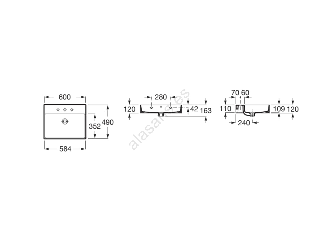 • El embalaje incluye el lavabo; sifón y grifería no están incluidos.