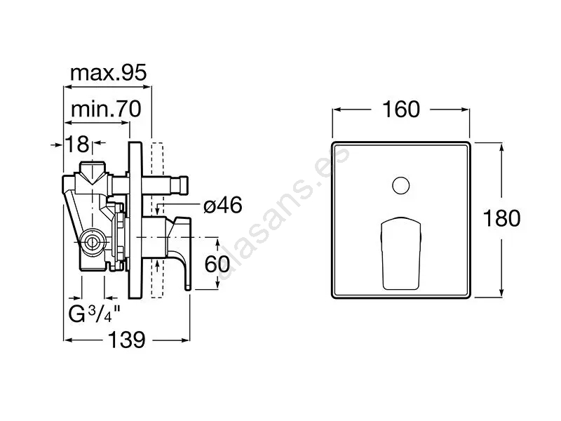 Roca A5A0B01C00 - Mezclador de ducha para instalación empotrada L90, cromo brillante