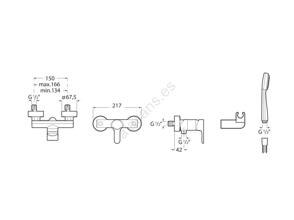 • El paquete incluye: grifo de ducha, ducha de mano, manguera flexible de 1,5 m, soporte mural giratorio.