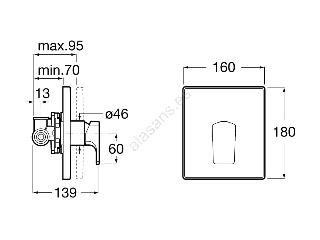 Roca A5A2B01C00 - Grifería de ducha para instalación empotrada L90, acabado cromado brillante