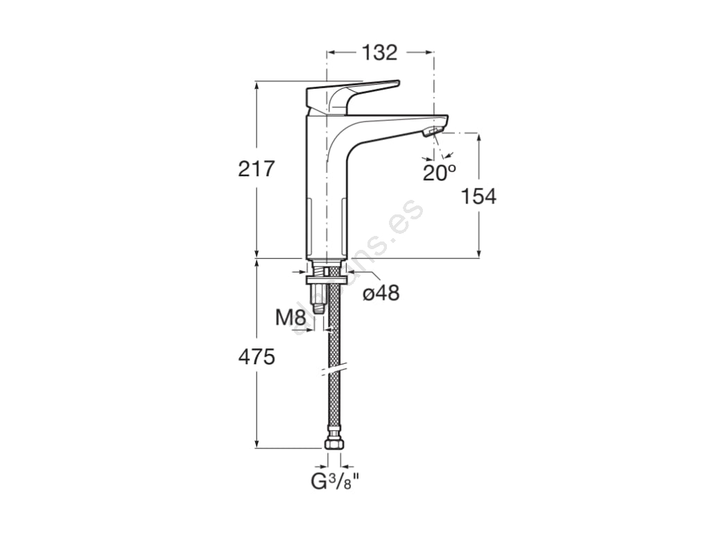 Roca A5A3D90C00 - Grifo de lavabo ATLAS 21,7 cm, cromo brillante