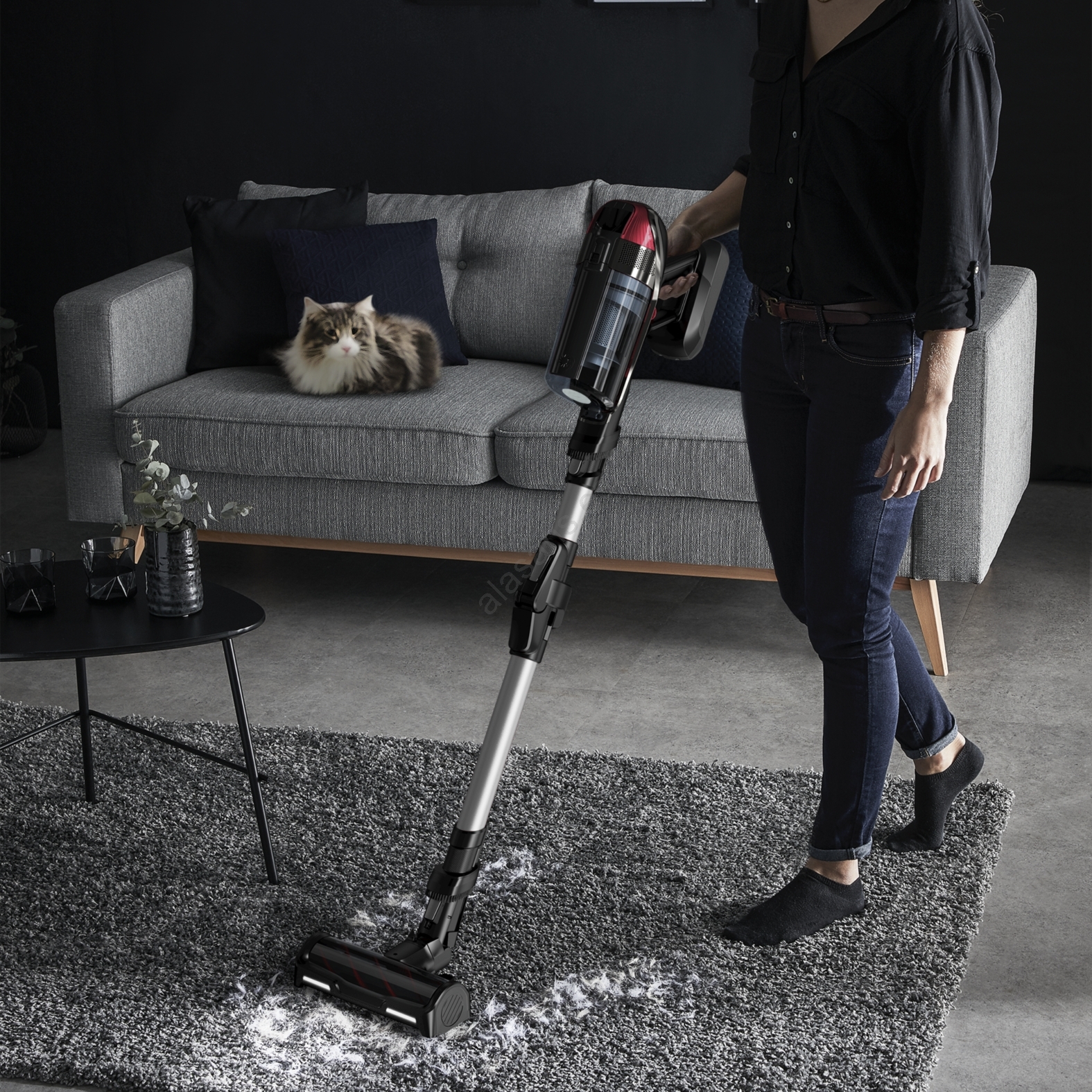 • Batería extraíble de 25,2 V con hasta 45 minutos de autonomía (en modo Eco para aspirado de mano).