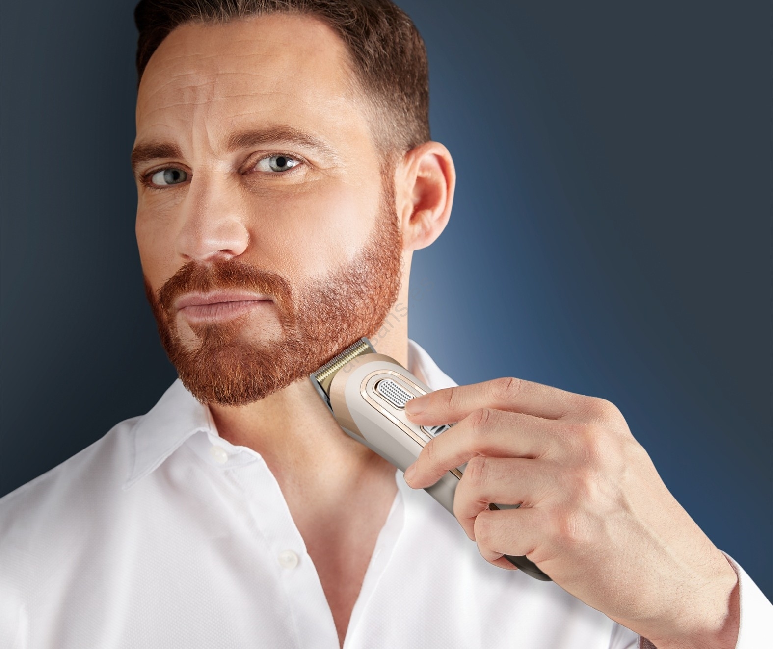 • Accesorio ajustable para barba (3–7 mm) con una precisión de 1 mm y 4 peines fijos para cabello (3-6-9-12 mm).