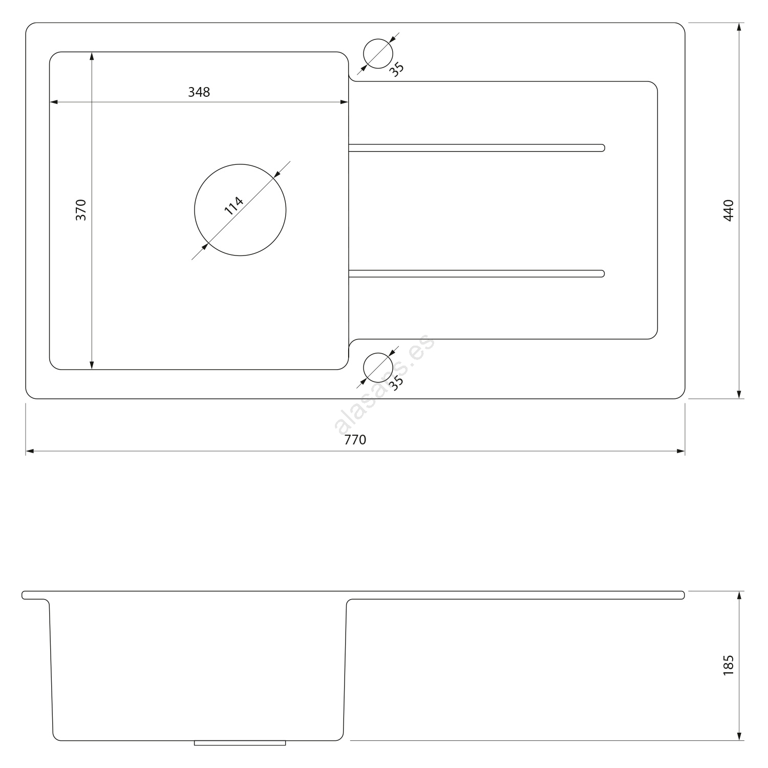 • El fregadero está diseñado para montaje superior e incluye sifón con derivación para lavavajillas o lavadora.