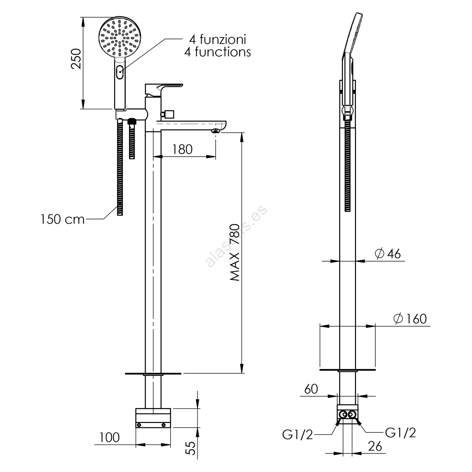 • Esta grifería para bañera está pensada para instalación en el suelo.