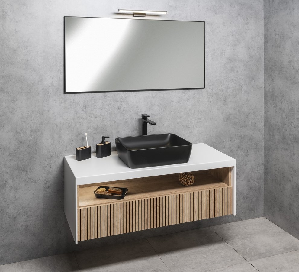 • El espejo con marco Arowana es un complemento elegante y práctico para cualquier baño.