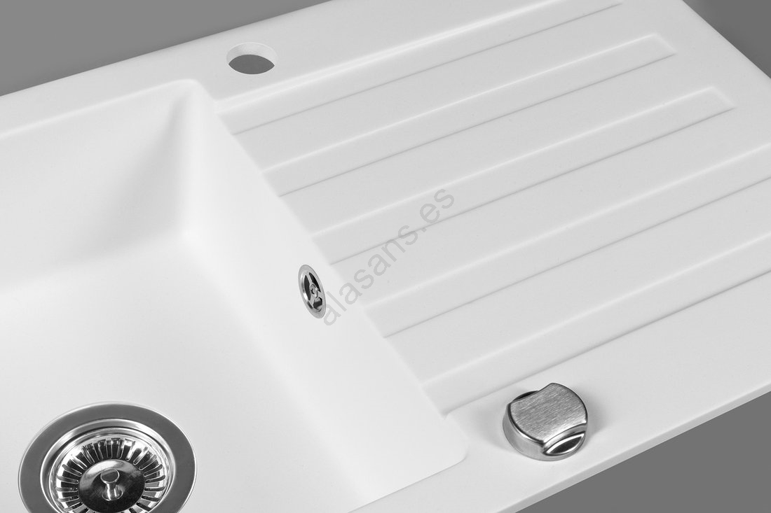 • El fregadero está fabricado en granito y presenta un elegante acabado en blanco.