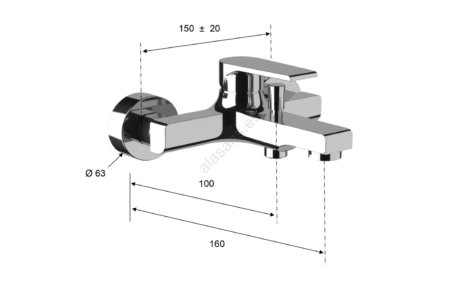 Sapho - Grifo para bañera KAI cromo brillante