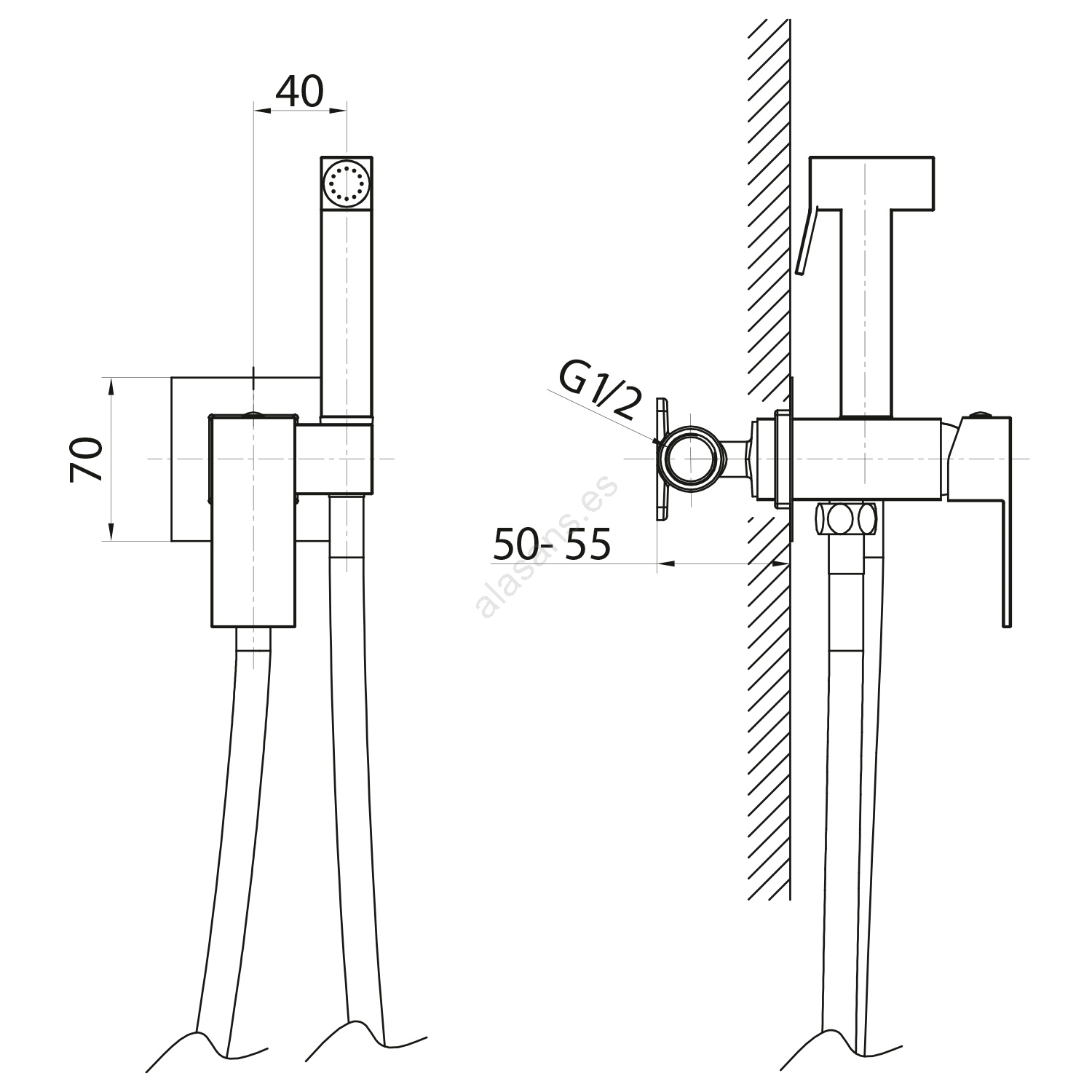 Sapho - Grifo de bidé con ducha para instalación empotrada CUBEMIX oro mate