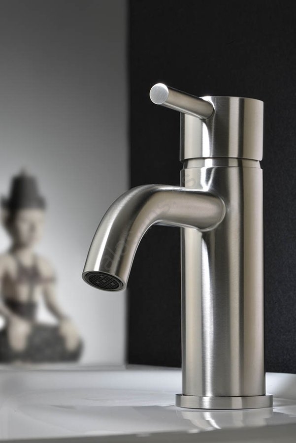 • Este grifo de lavabo de diseño minimalista está fabricado en acero inoxidable.