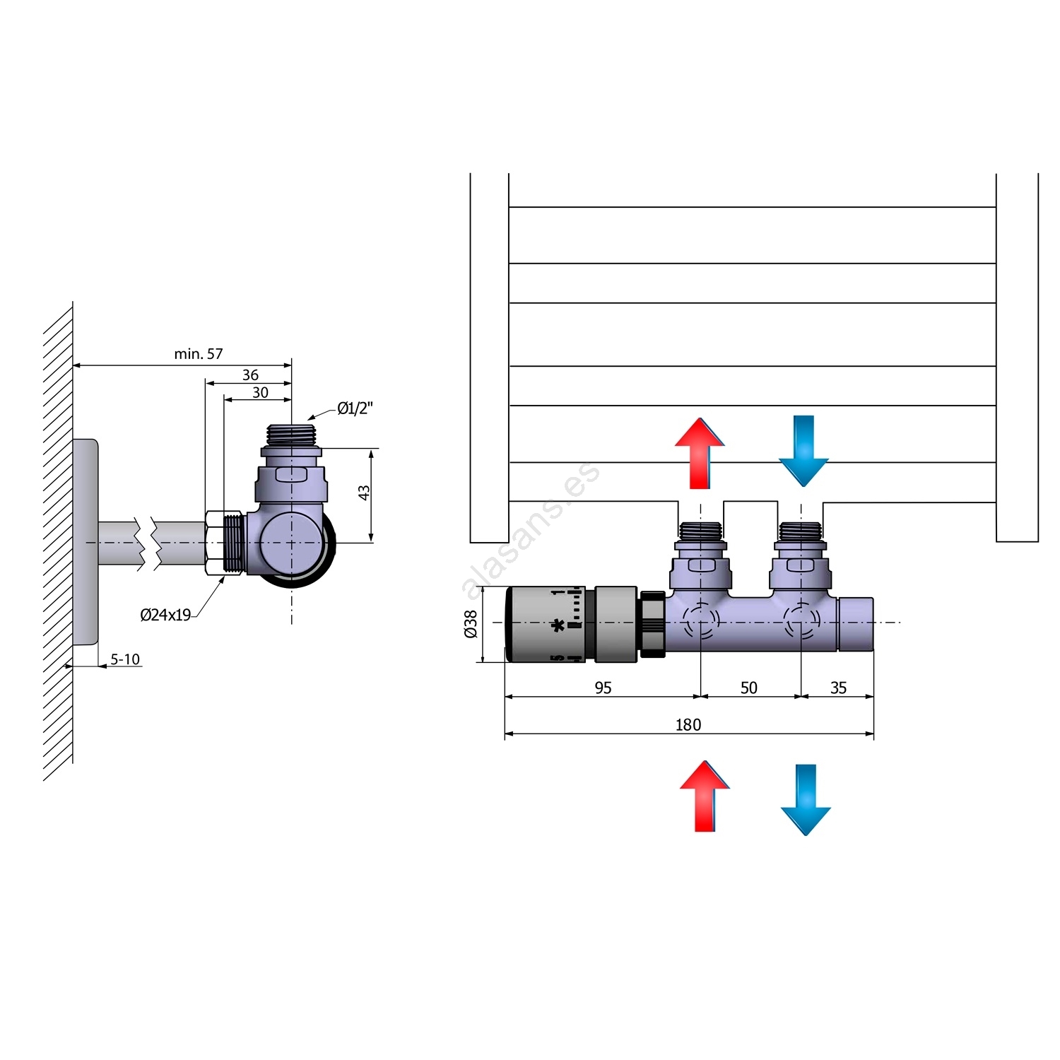 Sapho - Kit termostático de conexión para instalación central TWIN izquierda/acero inoxidable mate