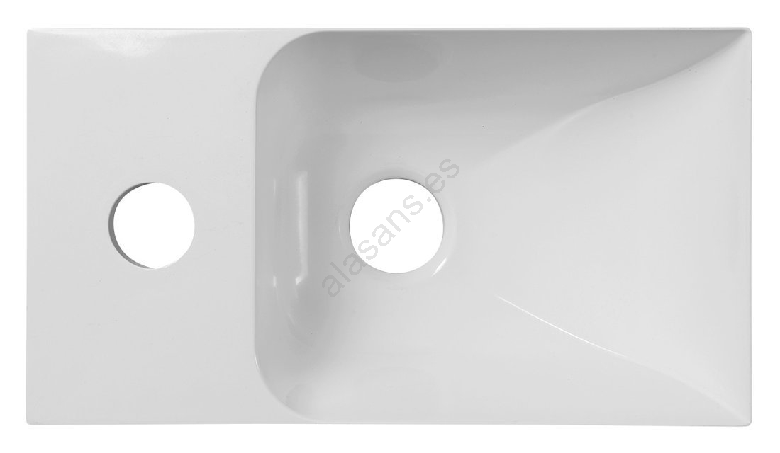 • Está diseñado para montaje en pared y cuenta con un orificio para grifo en el lado izquierdo.