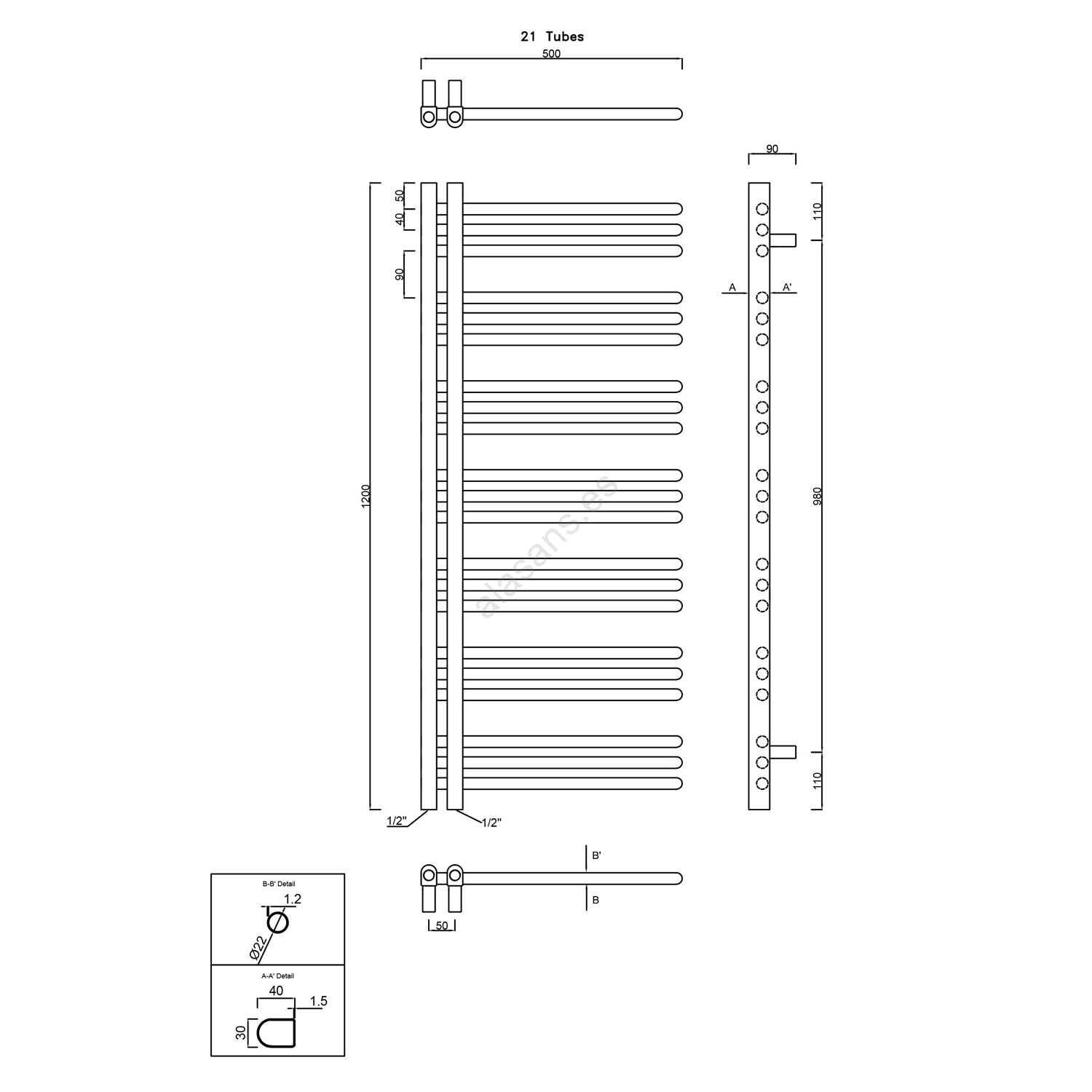 Sapho - Radiador de baño DORLION 120x50 cm blanco
