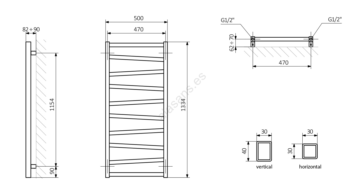 Sapho - Radiador toallero ZIG para baño, 490 W/230 V, 50 x 133 cm, blanco