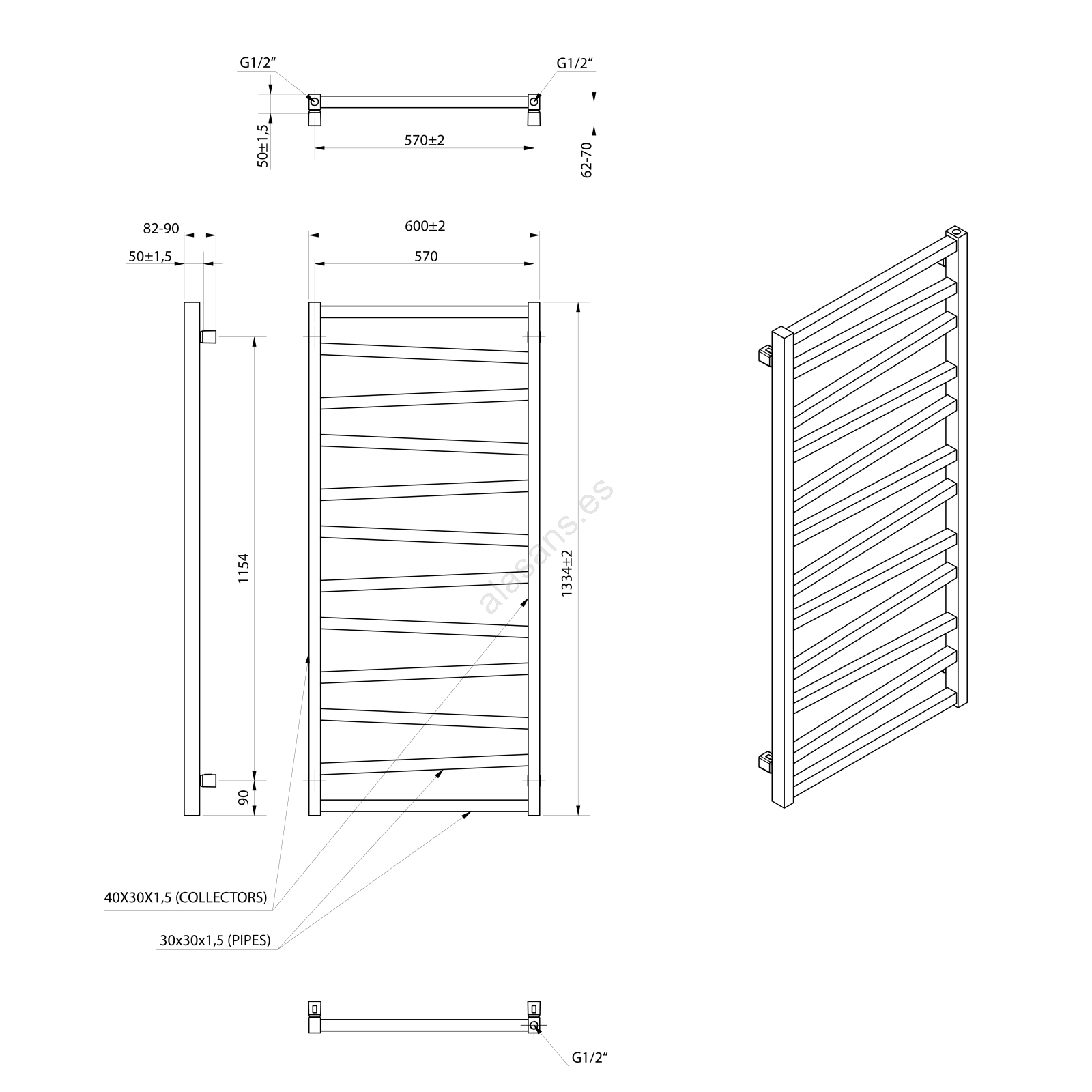 Sapho - Radiador de baño ZIG 601W/230V 60x133 cm negro