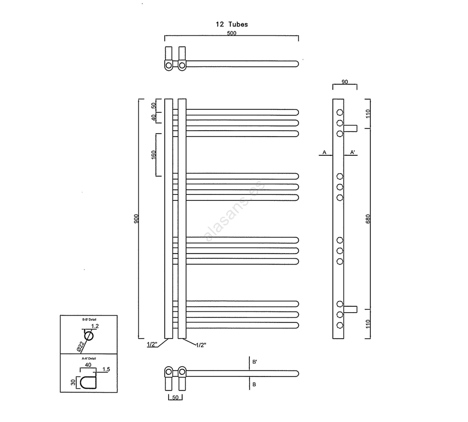 Sapho - Radiador toallero para baño DORLION 300W/230V 50x90 cm negro mate