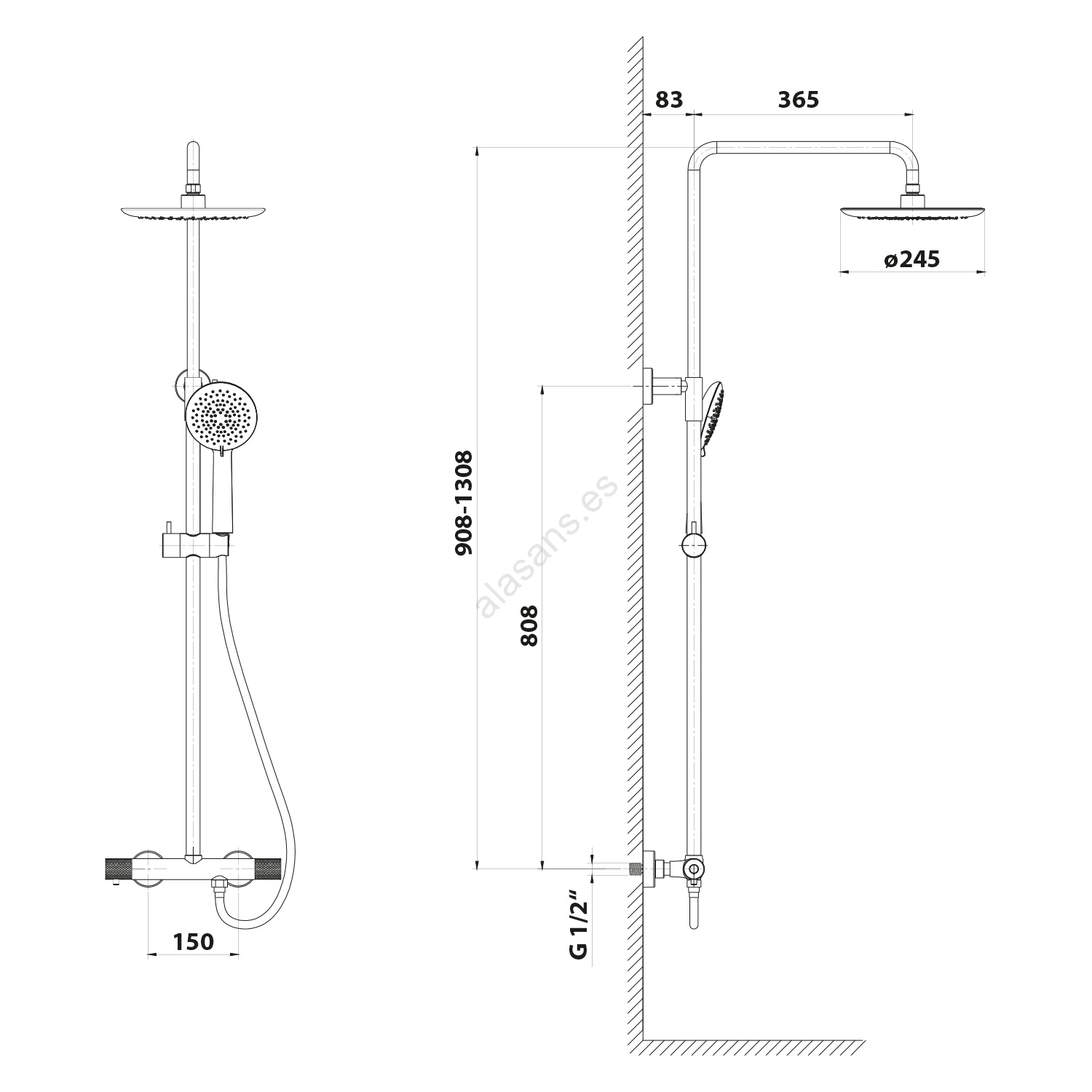 • La columna de ducha presenta líneas esbeltas y detalles de estilo industrial.