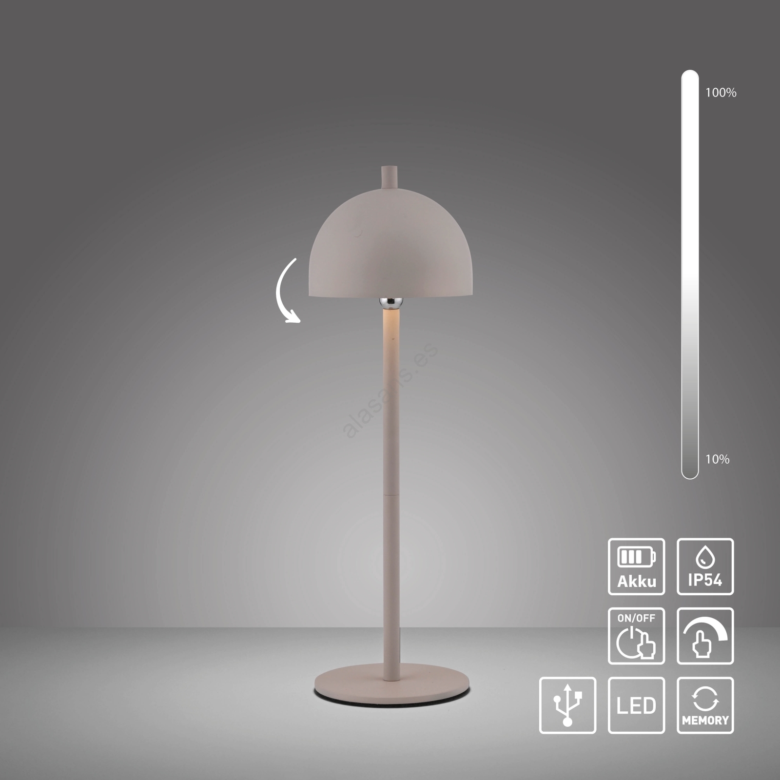 • Schöner Wohnen 19244-16 - Lámpara de mesa para exterior BELLIS, LED táctil regulable y recargable, LED/2,5W/5V 2600 mAh IP54, blanca