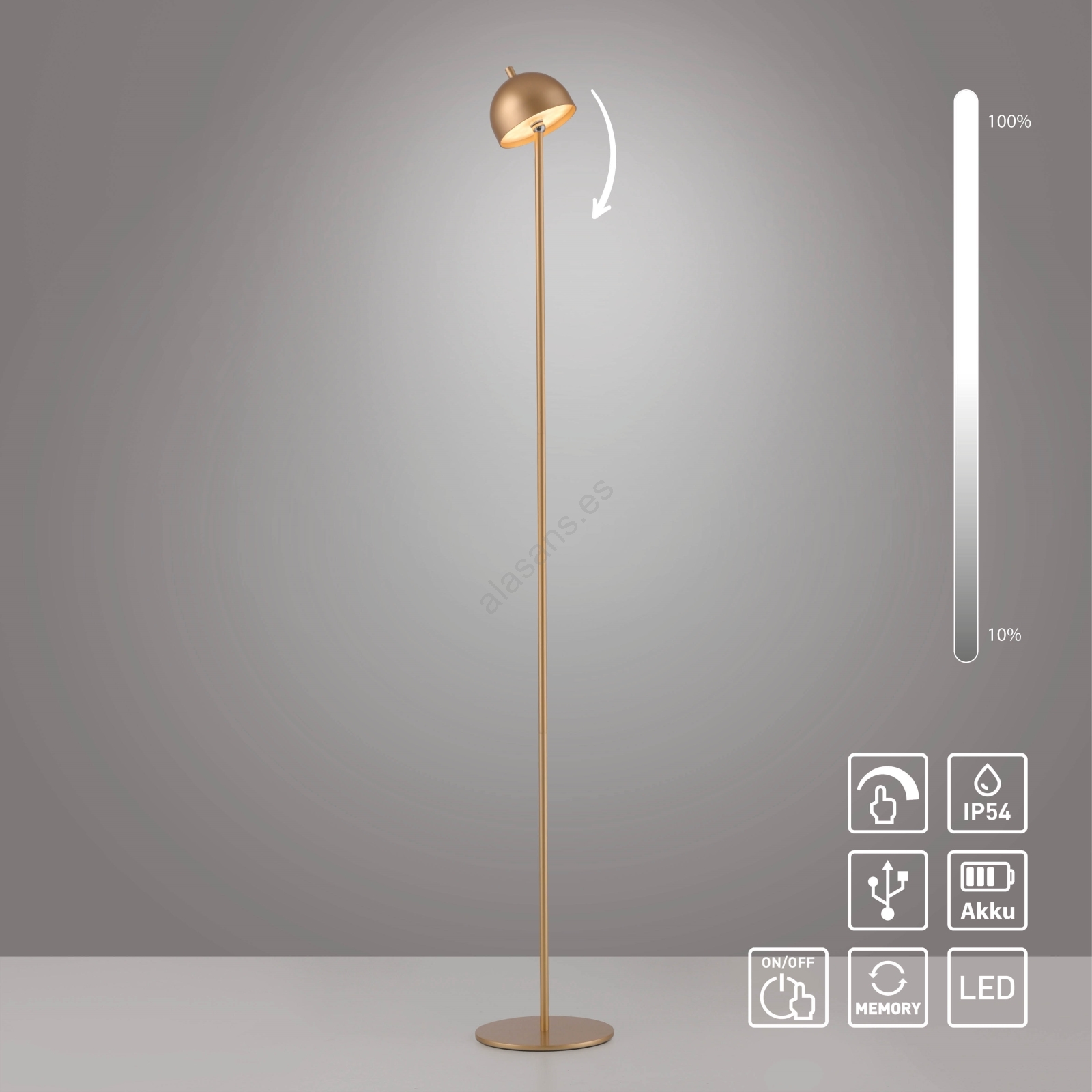 • Schöner Wohnen 19245-12 - Lámpara de pie exterior recargable LED regulable con control táctil BELLIS LED/2,5W/5V 2600 mAh IP54 dorada