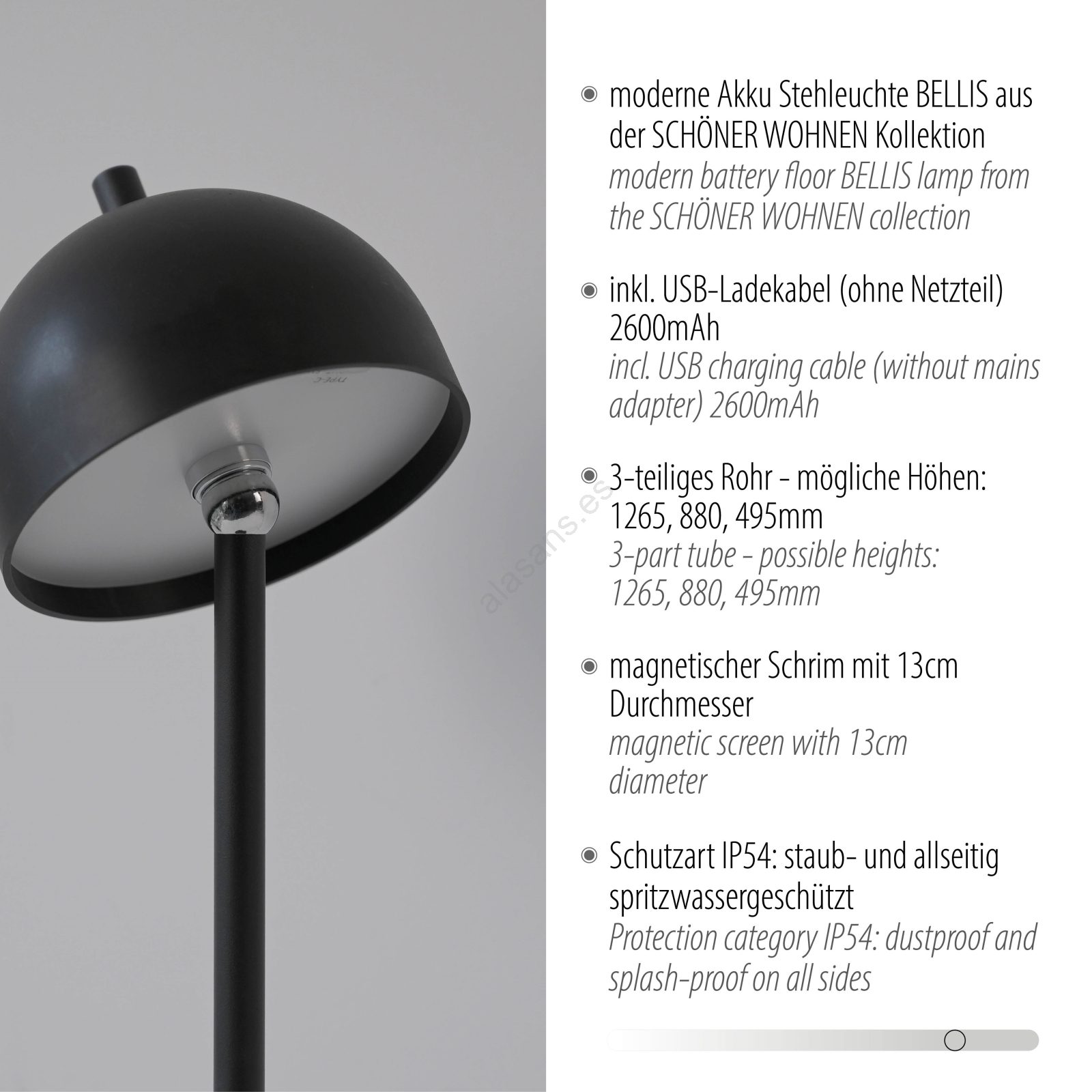 • Schöner Wohnen 19245-39 - Lámpara de pie exterior recargable LED BELLIS, regulable con control táctil, 2,5W/5V, 2600 mAh, IP54, gris